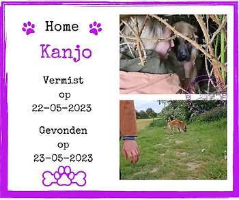 Toen werd er online een losloper gedeeld door HZGV en deze hond leek erg veel op Kanjo, er werd meteen contact opgenomen maar de kans was toch klein omdat het waarschijnlijk om een losloper ging die er al eerder had gelopen in die buurt.